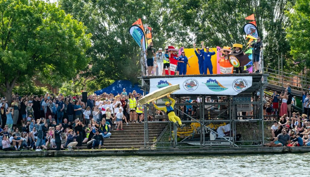 Do you fancy going up? Up, up and down. Well, if jumping into the docks in a flying contraption of your own making is your thing, then Birdman is back. It’s hosted in Bristol for the first time. The competition takes place all over the country, usually on a pier at the seaside town. Bristol, though it’s got a harbour.